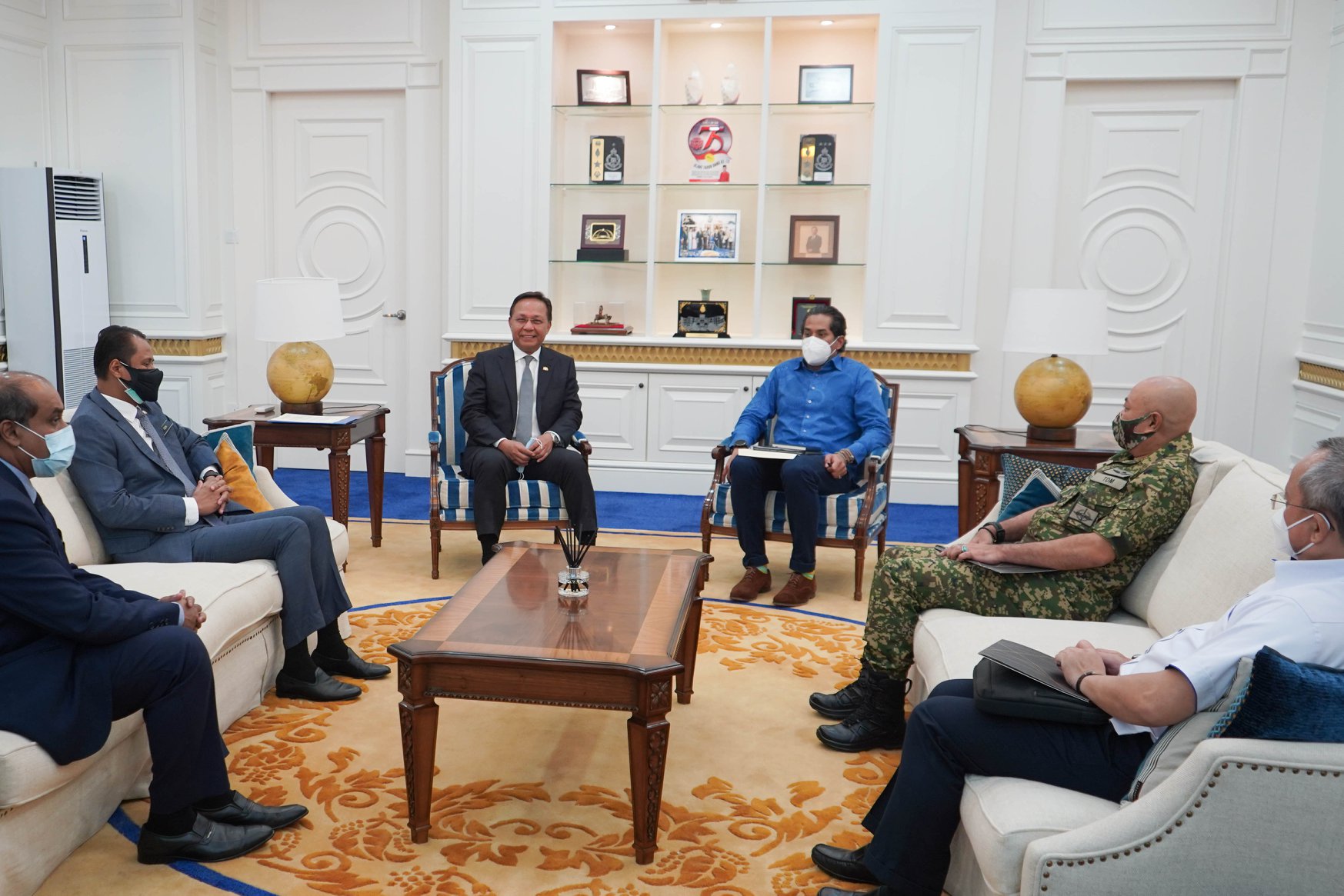 8 Jun 2021, Johor – YB Khairy Menteri Sains, Teknologi dan Inovasi merangkap Menteri Penyelaras Program Imunisasi COVID-19 Kebangsaan (PICK) hari ini mengadakan kunjungan hormat ke atas YAB Dato’ Haji Hasni bin Mohammad, Menteri Besar Johor di Iskandar Puteri, Nusajaya, Johor seterusnya mempengerusikan bersama Mesyuarat Badan Bertindak Imunisasi COVID-19 (CITF) Peringkat Negeri Johor.