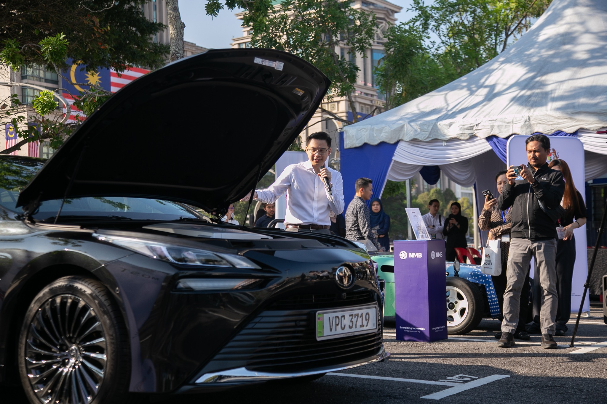 Turut diadakan demonstrasi pengisian 3 unit kenderaan Toyota MIRAI di Stesen MHRS diikuti sesi pandu uji bagi merasai pengalaman pemanduan Kenderaan Elektrik Sel Fuel atau (Fuel Cell Electric Vehicle, FCEV) yang menggunakan teknologi hidrogen.